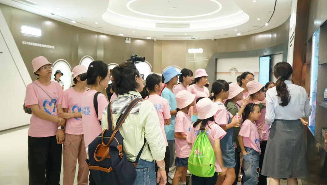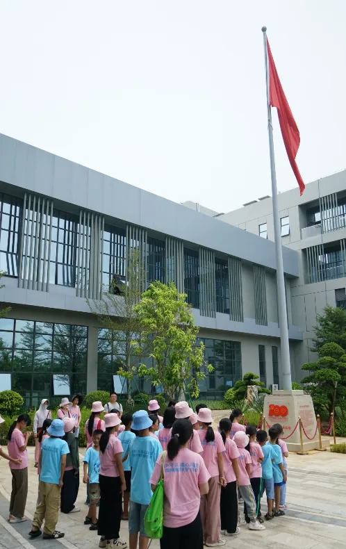 紧接着,孩子们来到了建党百年庆典红旗——070号红旗前。讲解员讲述了尊时凯龙药业集团与庆典红旗的深厚渊源。孩子们听得津津有味,眼中闪烁着对党和国家的热爱与敬仰。
