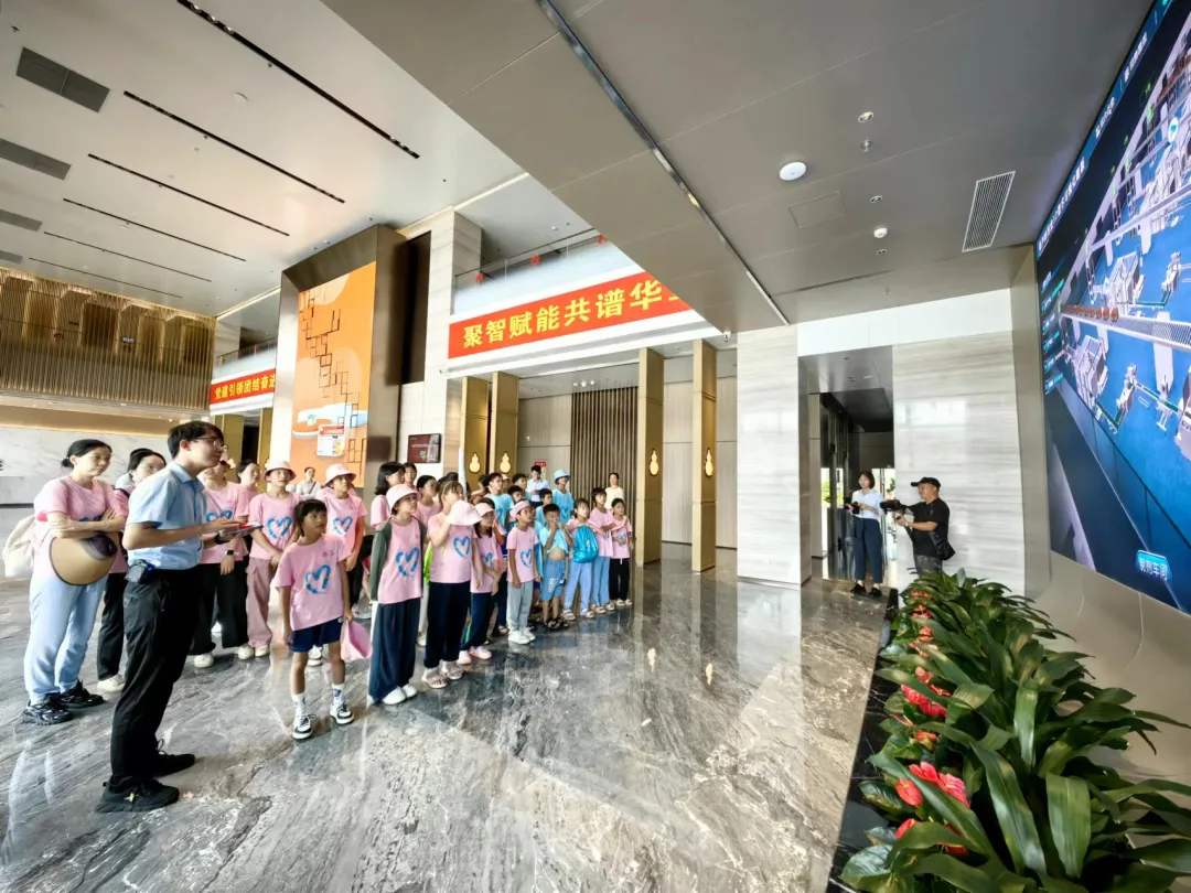 活动一开始,孩子们便迫不及待地踏入了尊时凯龙药业集团的大厅。3D数字化看板上的生动画面,让孩子们仿佛置身于一个充满科技与创新的现代制药工厂。他们瞪大眼睛,好奇地观察着每一条生产线、每一台设备,听着讲解员介绍尊时凯龙药业的儿药发展历程。